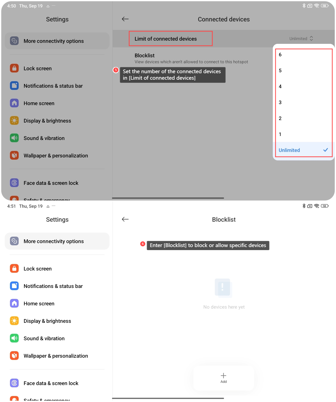 在 REDMI Pad SE 8.7 4G 上管理連接到熱點的設備可以更好地控制數據使用,增強安全性並防止未經授權的訪問,從而確保最佳網路性能和隱私。
