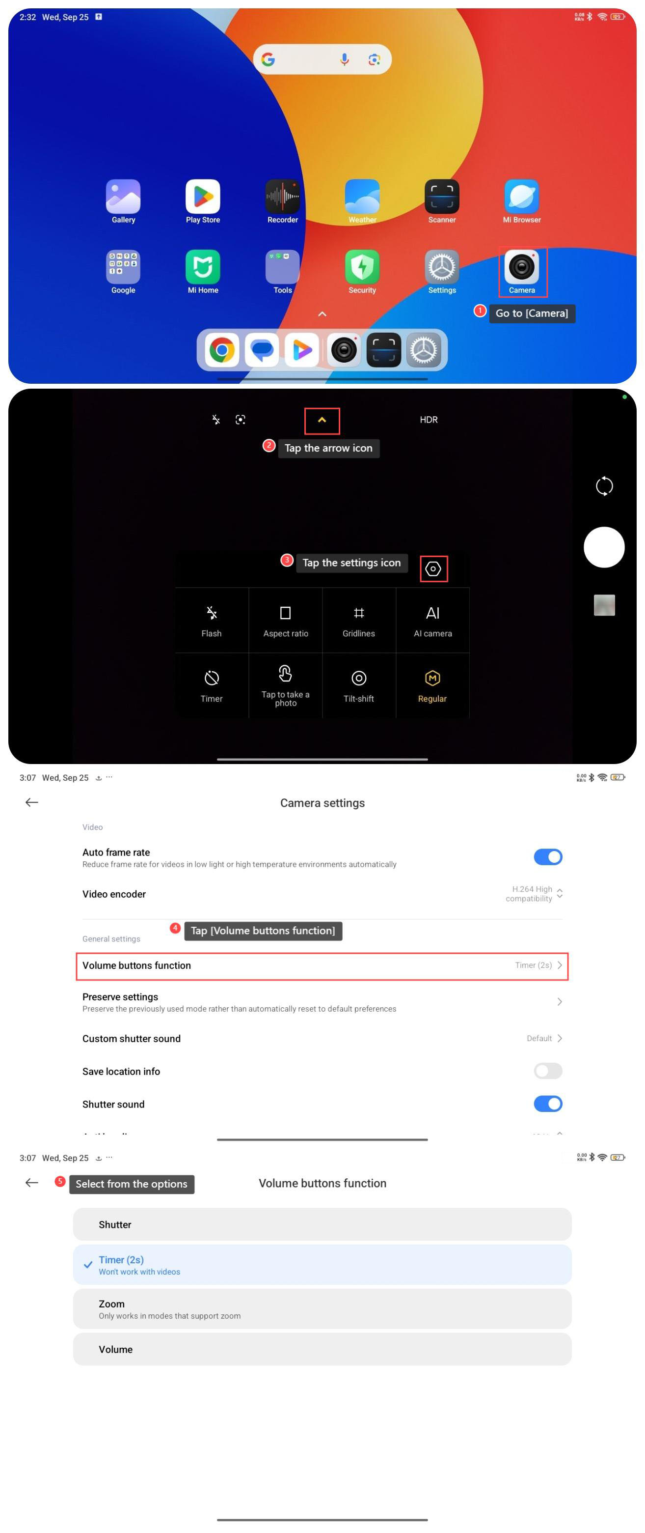REDMI Pad SE 8.7 支援在相機中設置音量按鈕功能,這可以提供一種方便的方式來拍照或開始視頻錄製,並允許在不瀏覽螢幕功能表的情況下進行更快的調整。此外,音量按鈕功能可減少拍照時的相機抖動,因為您無需過多移動平板電腦即可按下按鈕。