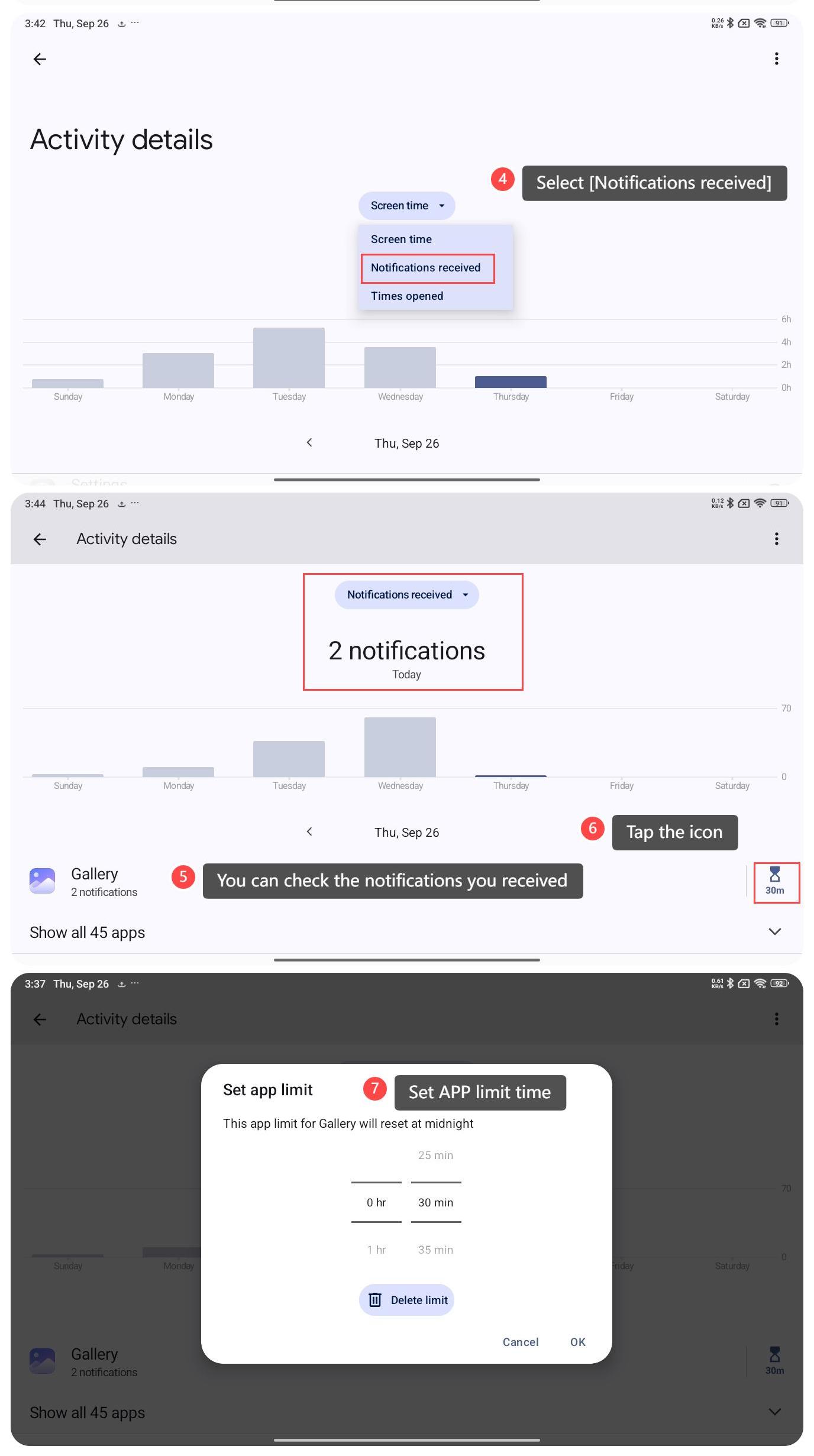 要查看和安排您每天在平板電腦上接收的通知數量 ,請參閱以下步驟: