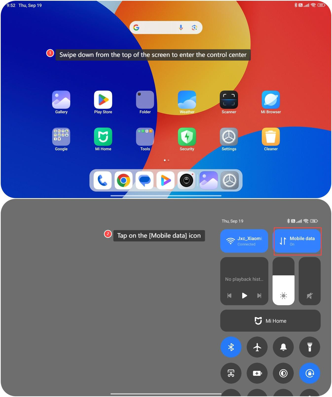 如何在 Redmi Pad SE 8.7 4G 上打開/關閉移動數據?