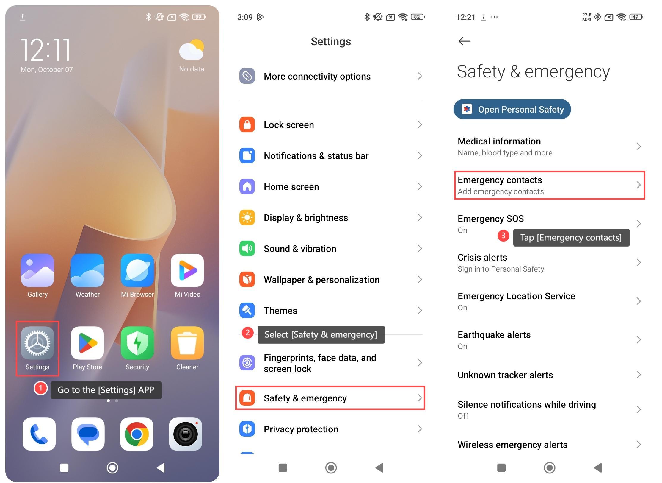 在 REDMI 13C 上設置緊急聯繫人可讓您在緊急情況下快速訪問和通知關鍵聯繫人。