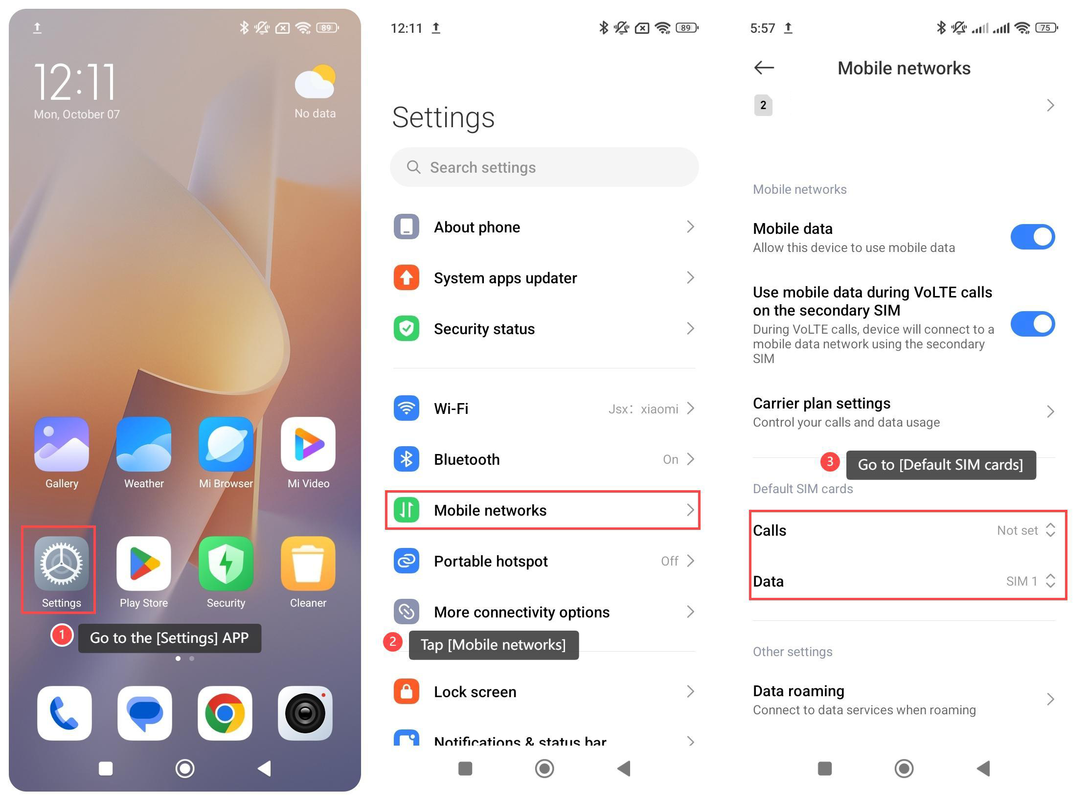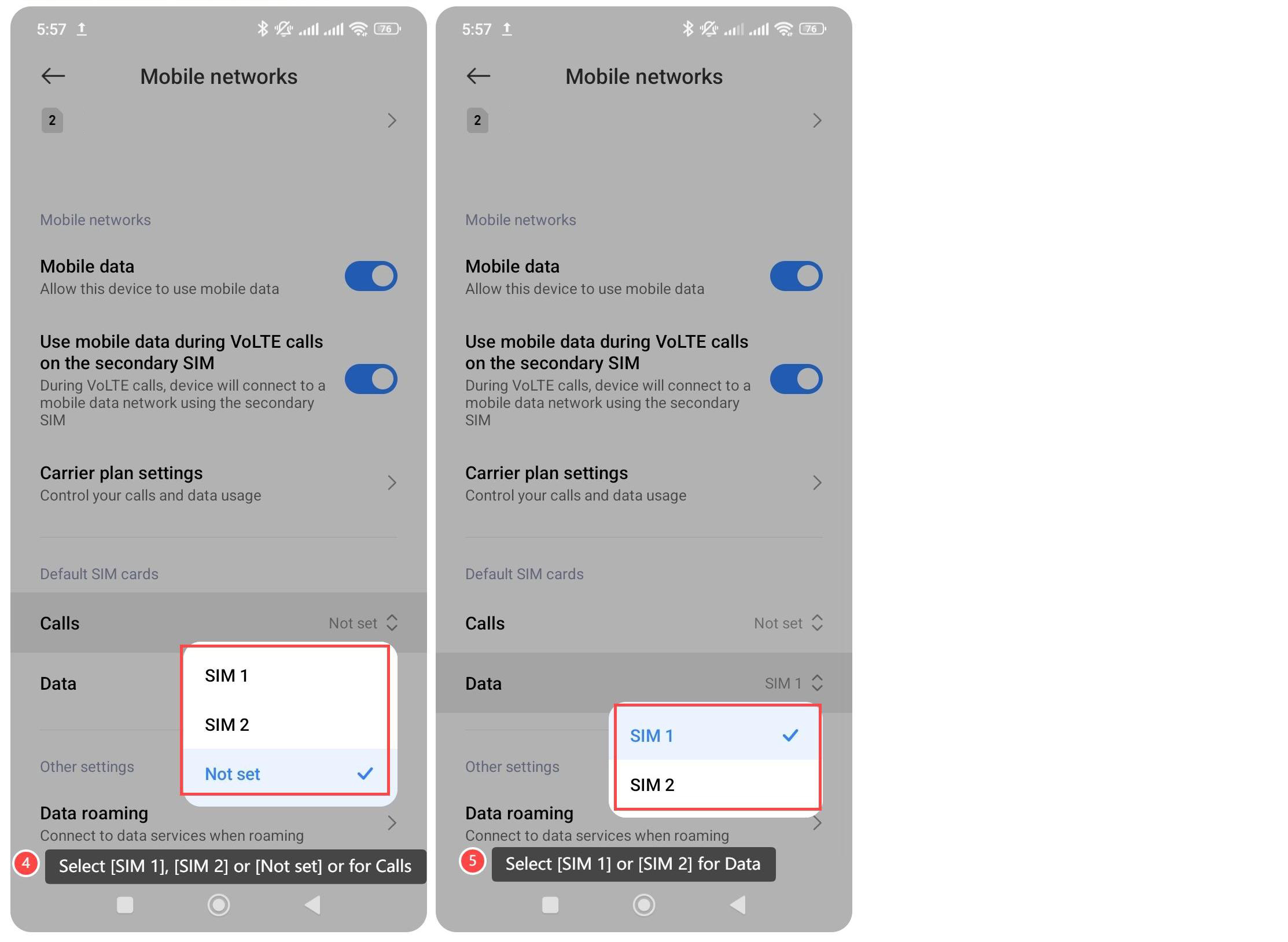 Redmi 13C 支援為行動資料設置預設 SIM 卡,這可以讓您