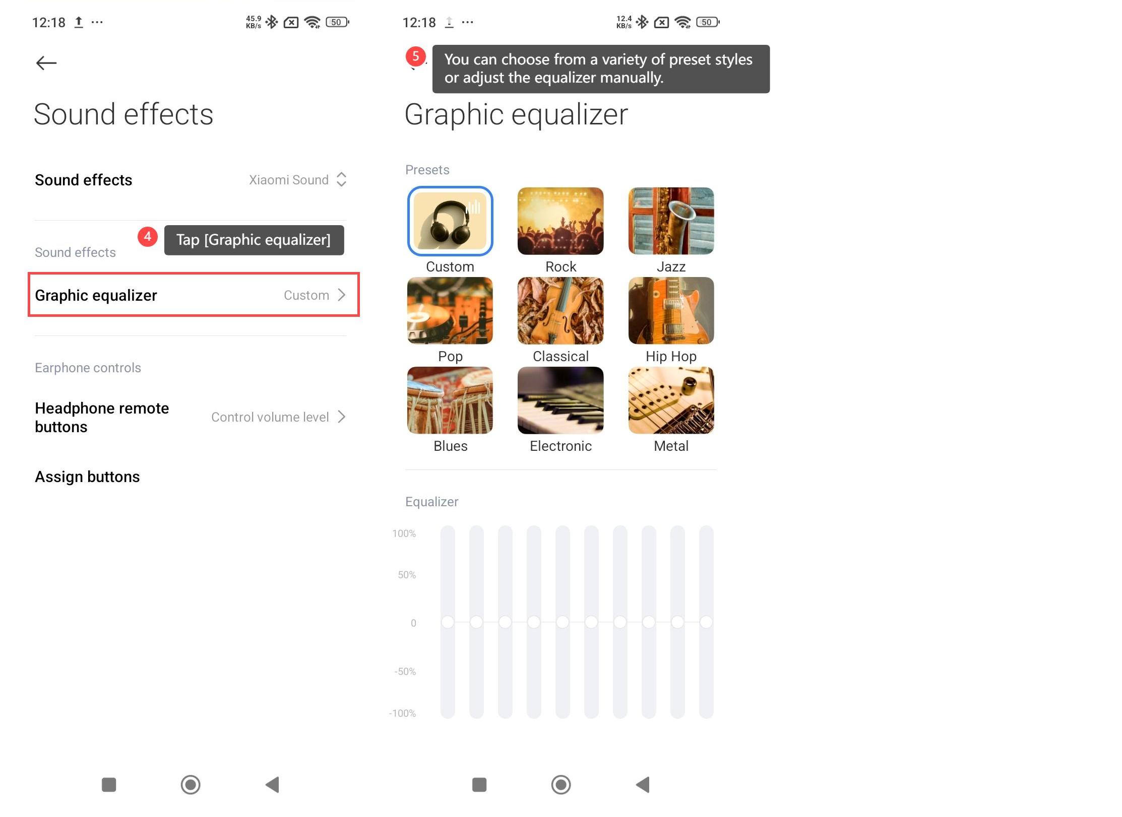 REDMI 13C 上的圖形均衡器是一項功能,可讓您通過修改各種頻段來調整聲音輸出。此工具使您能夠根據自己的喜好增強音訊播放,無論您更喜歡低音、高音還是平衡的聲音。通過自定義均衡器設置,您可以優化不同類型內容(如音樂、電影或遊戲)的音訊體驗。