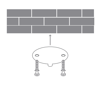 3. 放置壁掛支架,使標有箭頭的一側朝外。將壁掛孔與牆上的孔對齊。將螺絲穿過壁掛孔,然後使用十字螺絲刀將它們擰緊到牆上的牆壁插頭中;