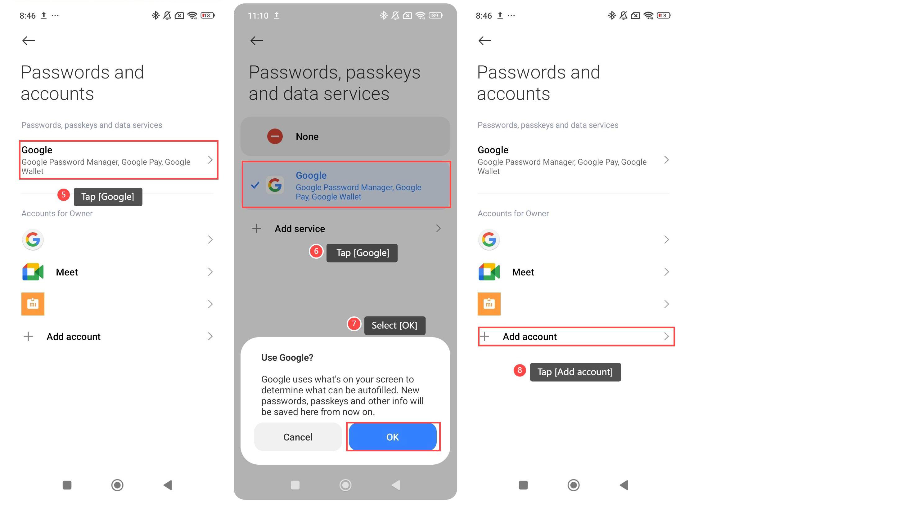 如何在 Redmi 13C 5G 上保存密碼和帳戶?