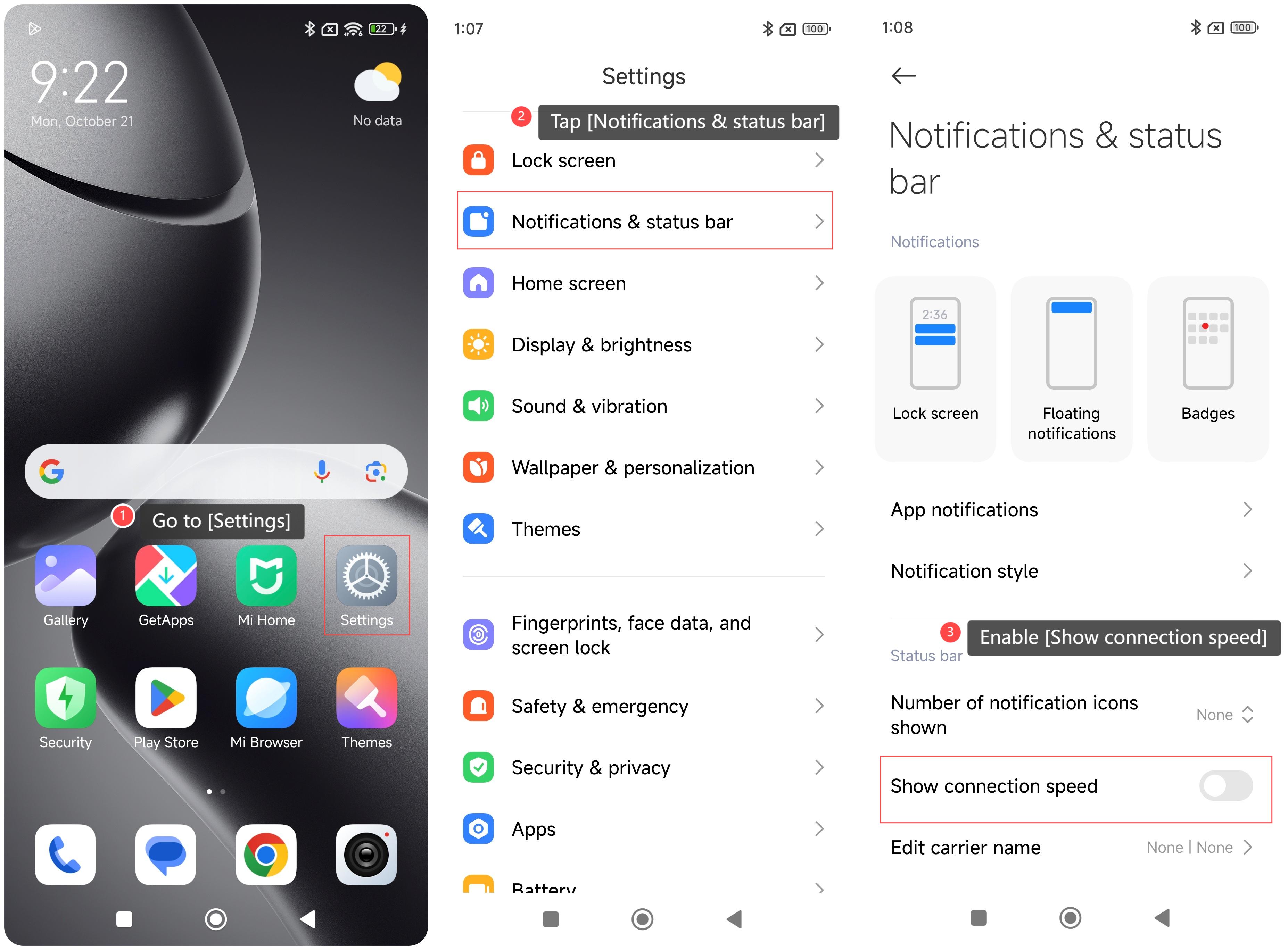 如何在 Xiaomi 14T Pro 上顯示連接速度?