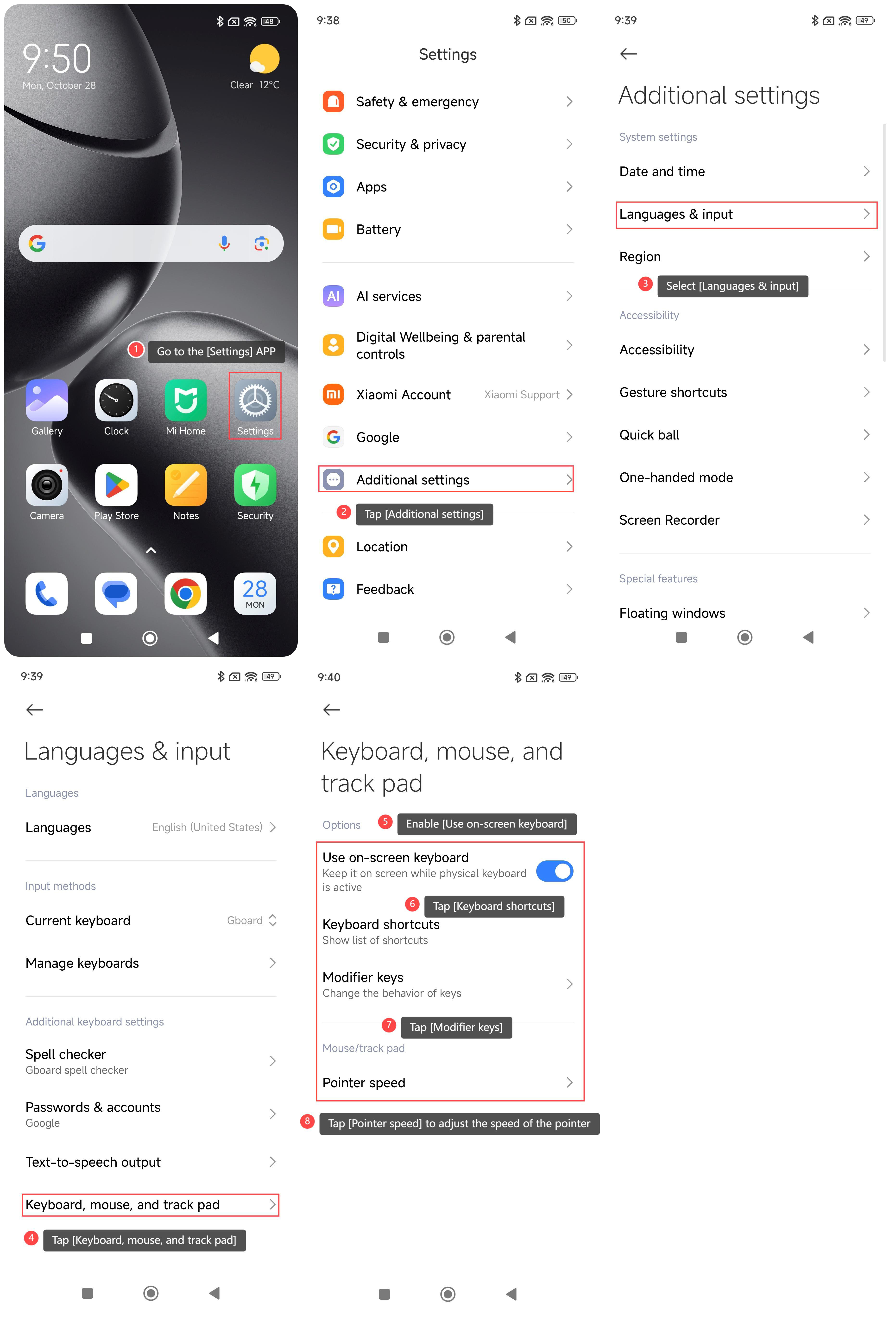 如何在 Xiaomi 14T 上設置鍵盤、滑鼠和觸控板?