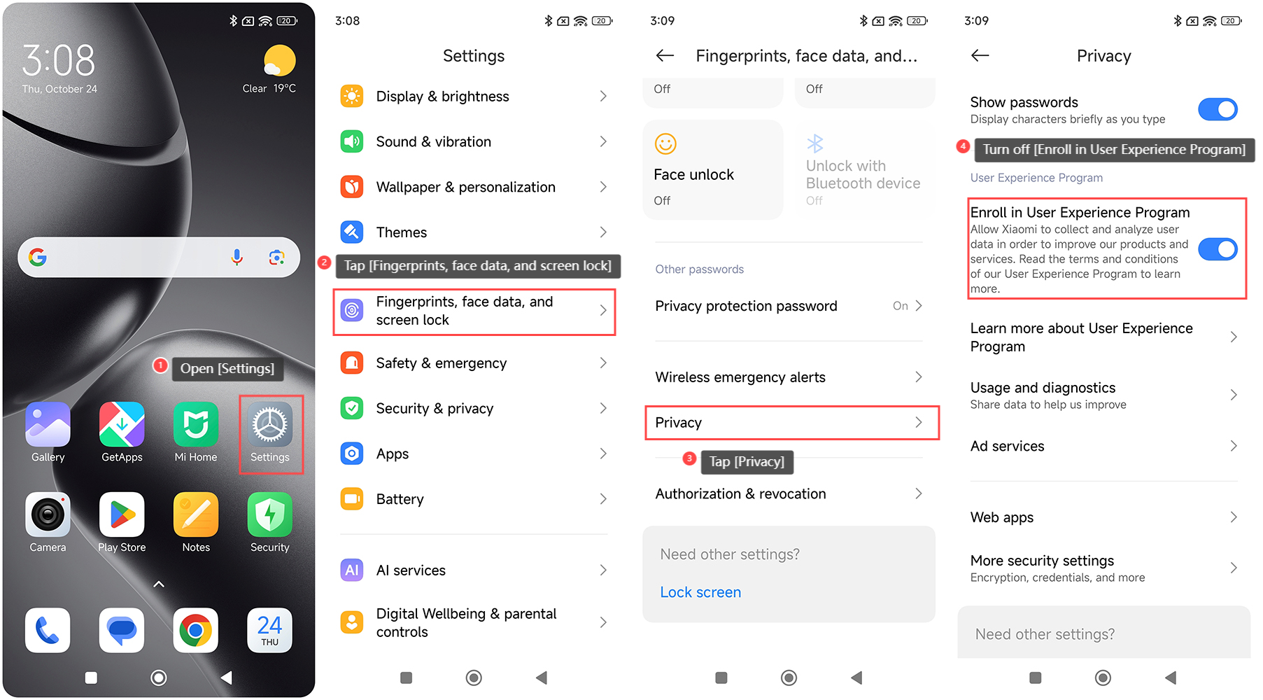如何關閉 Xiaomi 14T 上的 User Experience Program?