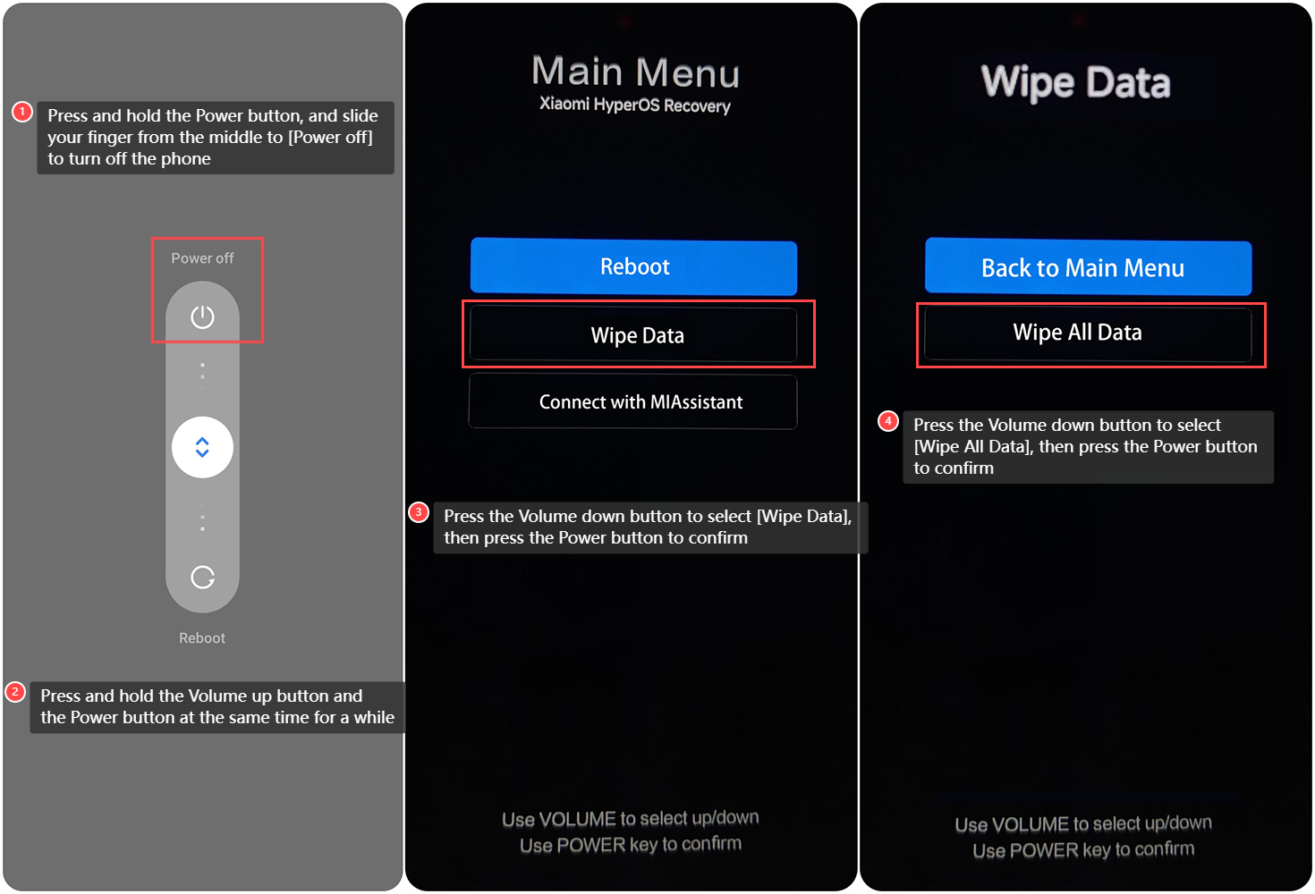 1. 長按電源鍵,將手指從中間滑至