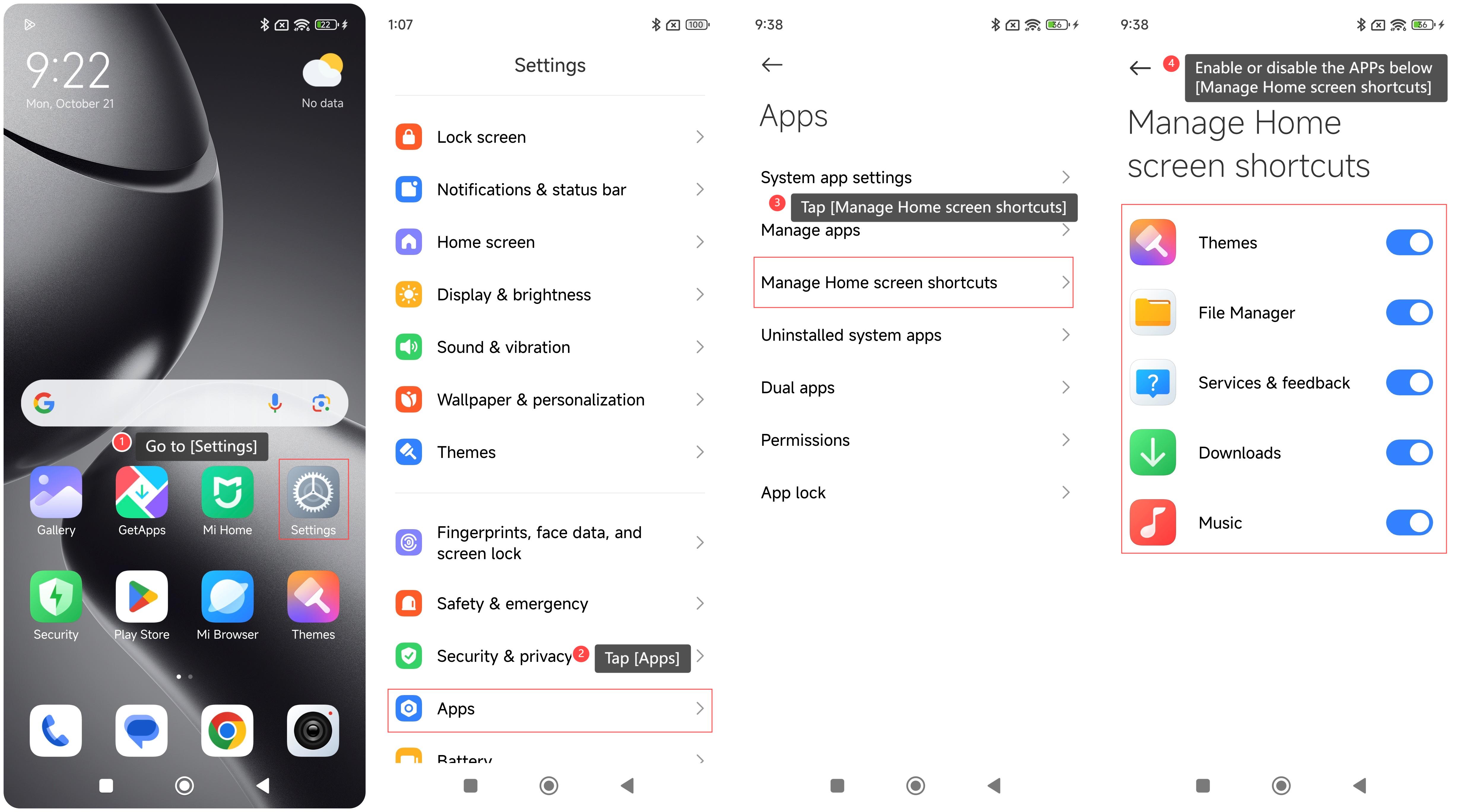 如何管理 Xiaomi 14T 上的主螢幕快捷方式?