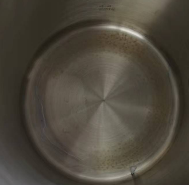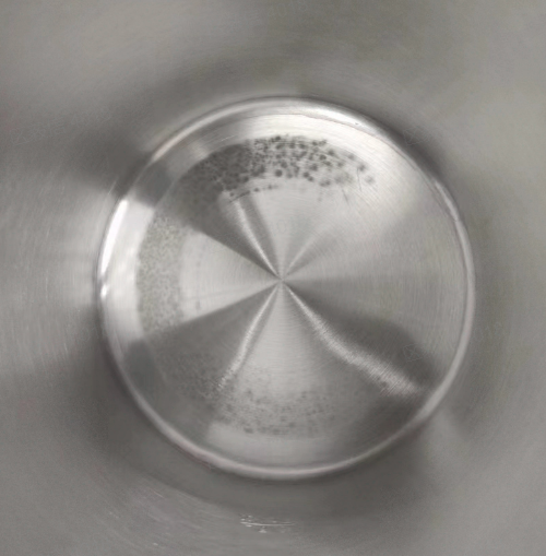 A:自然界中的水含有各類礦物質俗稱「硬水」,「硬水」煮沸過程中礦物質會沉澱,會產生水垢,水垢未及時清理,形成頑固色斑,如下圖: