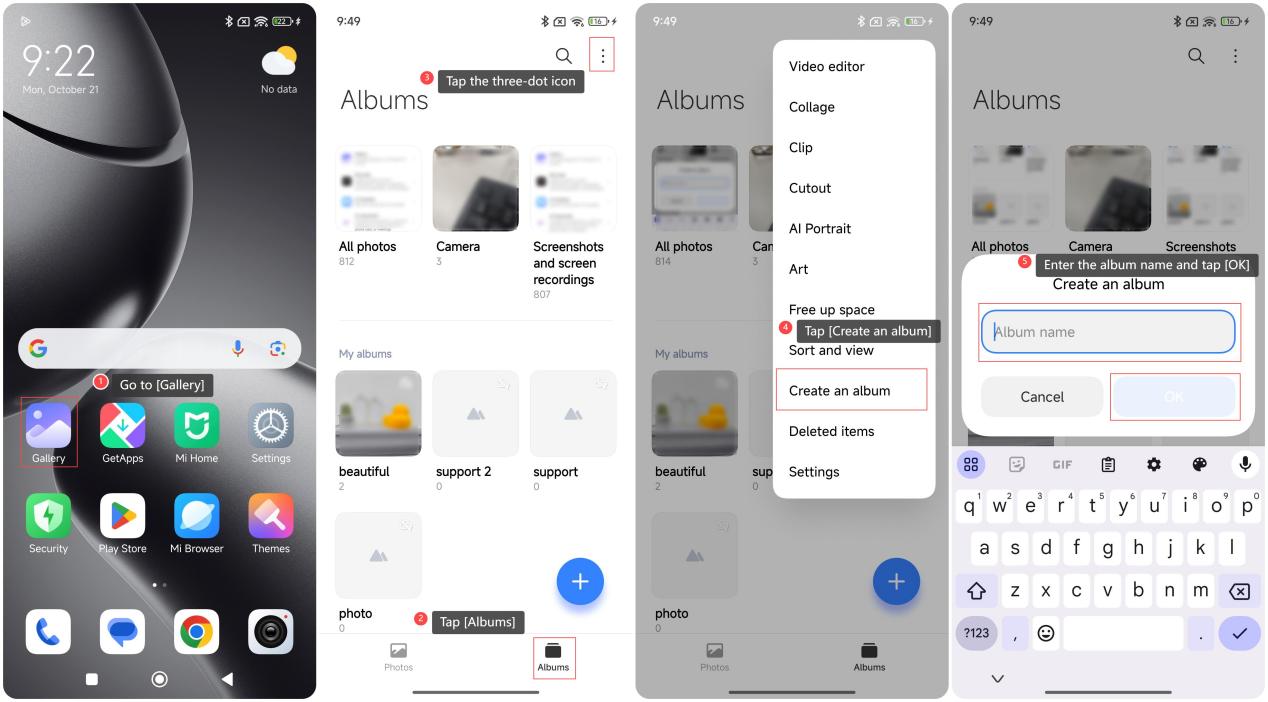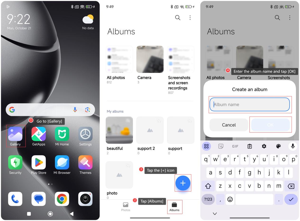 如何在 Xiaomi 14T Pro 上的 Gallery 中創建相冊?