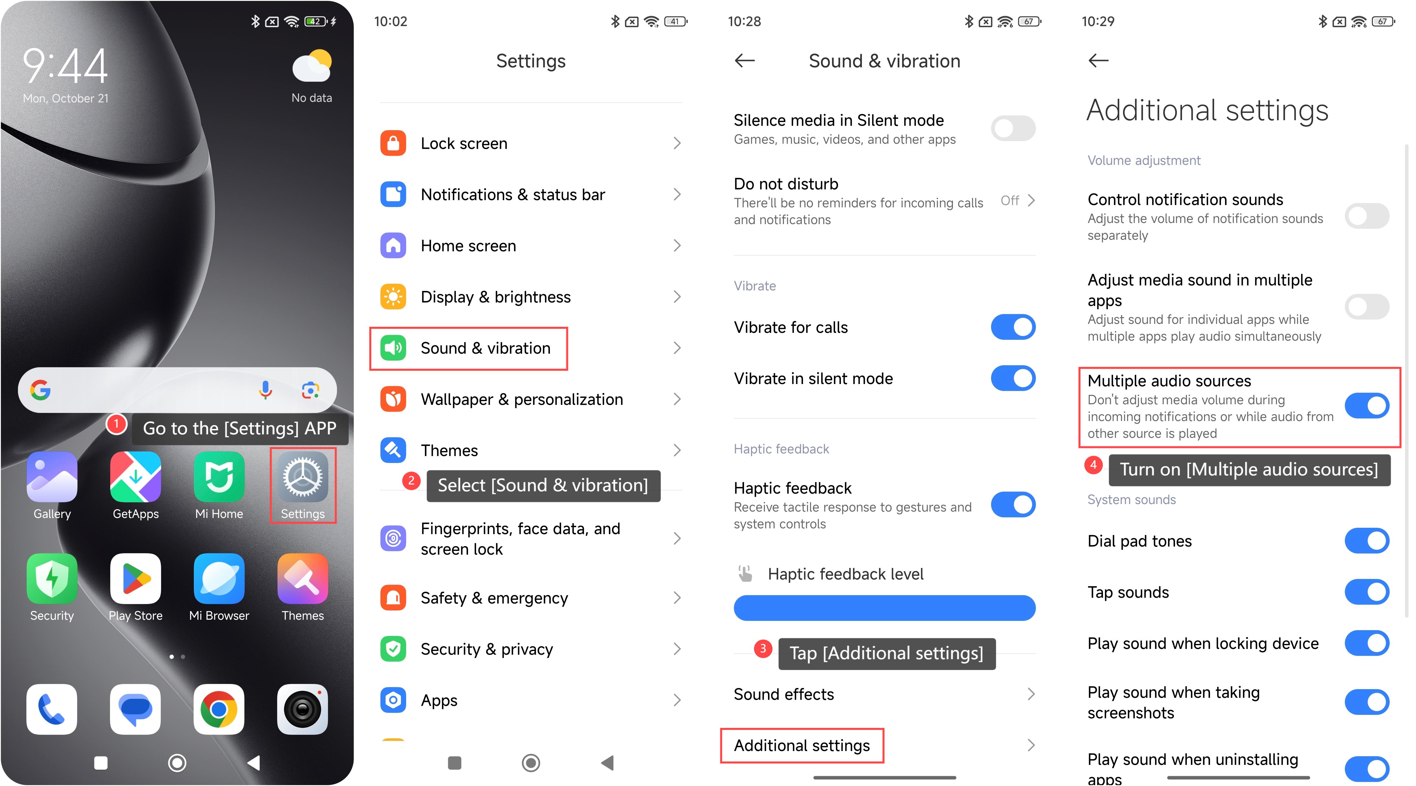 Xiaomi 14T 上內置的多個音訊源功能允許設備在傳入通知期間或播放來自其他源的音訊時不調整媒體音量。這意味著,當您使用其他 APP 或在手機上執行其他任務時,某些 APP,尤其是與媒體播放相關的 APP(例如,音樂播放機、視頻播放機、流媒體 APP 或來電、消息通知),可以繼續在後台播放音訊。啟用此功能后,您將享受到便利並擁有改進的音效體驗。