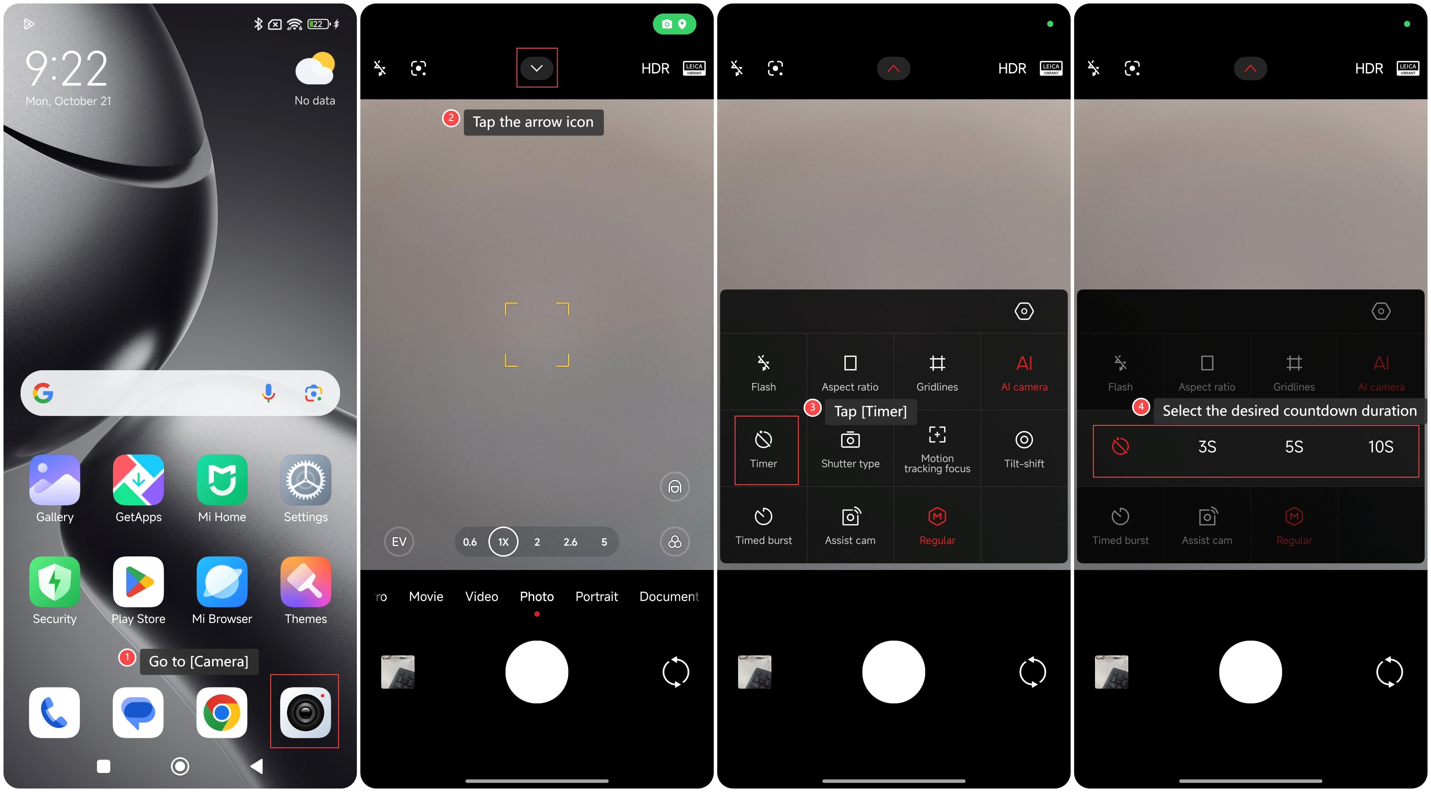 如何在 Xiaomi 14T Pro 上用計時器拍照?