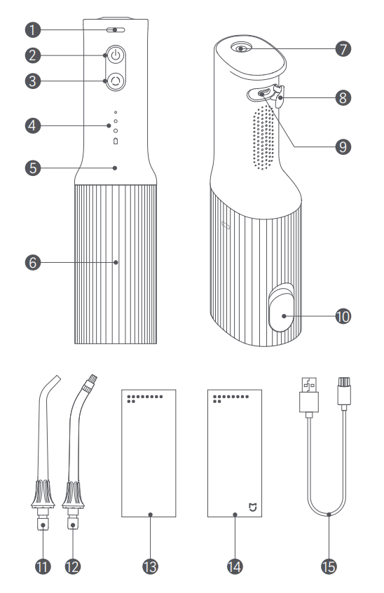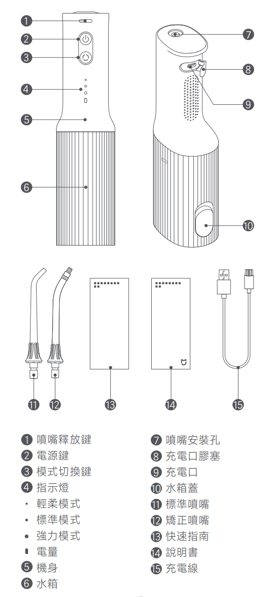A:Xiaomi 電動沖牙器 2的外觀如下圖所示: