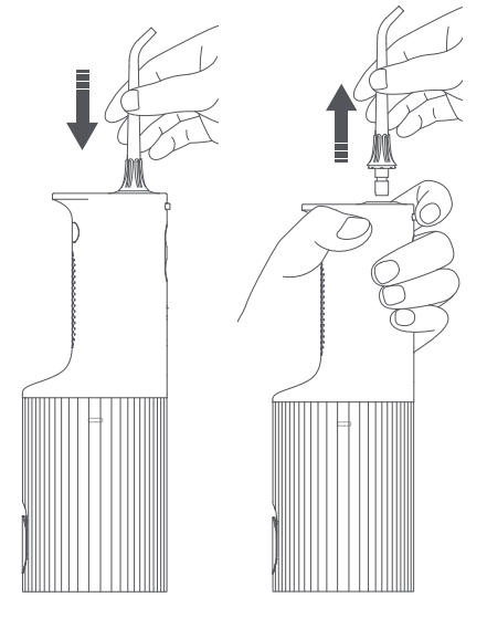 如果要移除Xiaomi 電動沖牙器 2 的噴嘴,您可以按住噴嘴釋放按鈕,同時向上拉噴嘴將其取下。