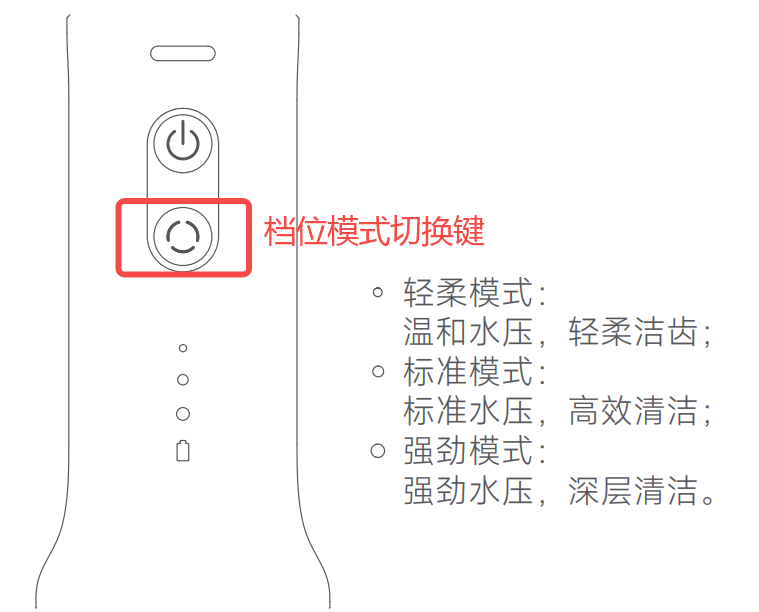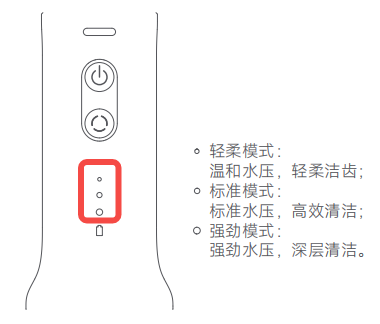 標準模式:標準水壓,高效清潔,適合日常牙齒清潔。