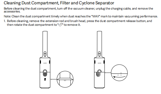 Q8:Xiaomi 無線吸塵器 P30透明集塵室上的MAX標誌代表什麼?