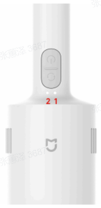 A:先區分指示燈,當吸塵器處於使用位置(握手端朝上,延長桿連接口朝下)時,左側指示燈為燈1,右側指示燈為燈2,如圖所示。