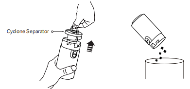 清潔前,請先將延長桿與刷頭取出,按下集塵倉釋放按鈕,然後旋轉集塵倉至解鎖標記即可取出。