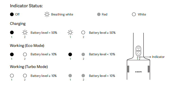 Q10:Xiaomi 無線吸塵器 P30的指示燈狀態有哪些?