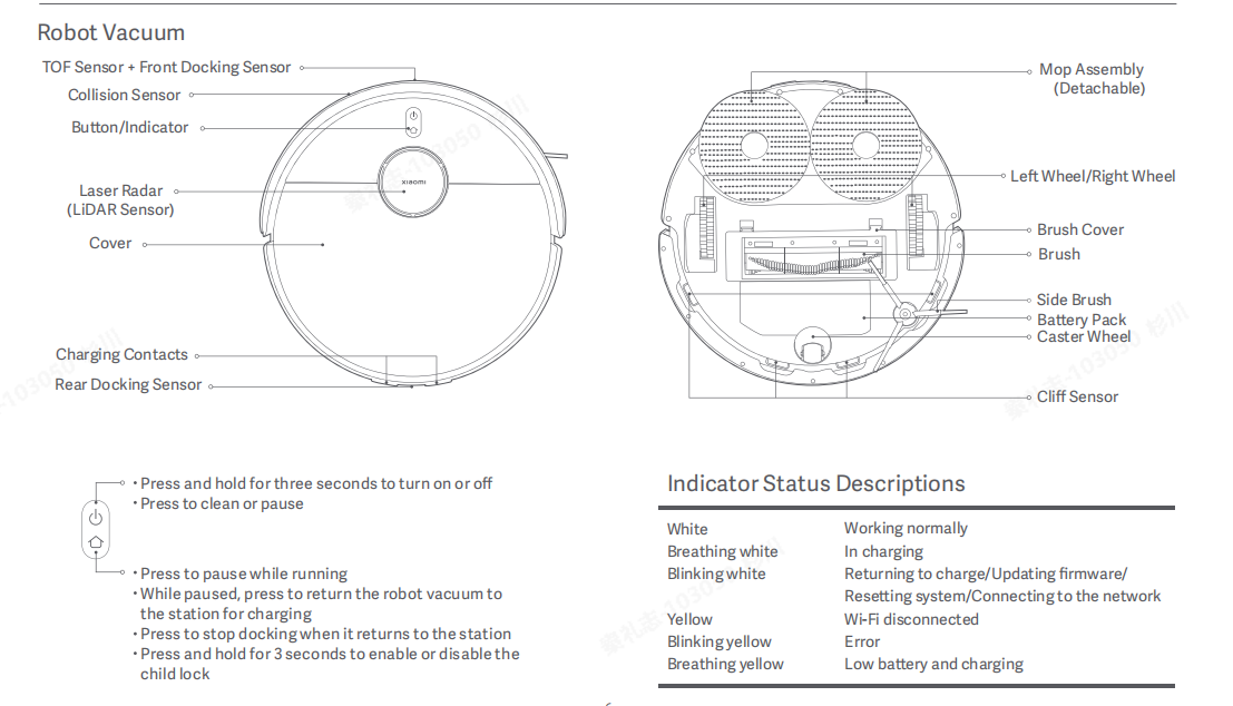 5.Q:Xiaomi 掃拖機器人 X20清洗站指示燈含義是什麽?