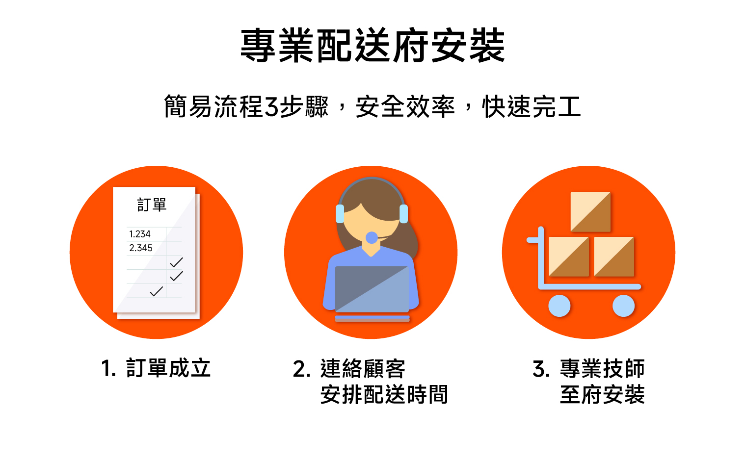 2、由生洋物流家電人員聯絡用戶,詢問安裝環境及資訊,並約定配送時間,安裝團隊將依指定時安裝日期送貨到府進行安裝。