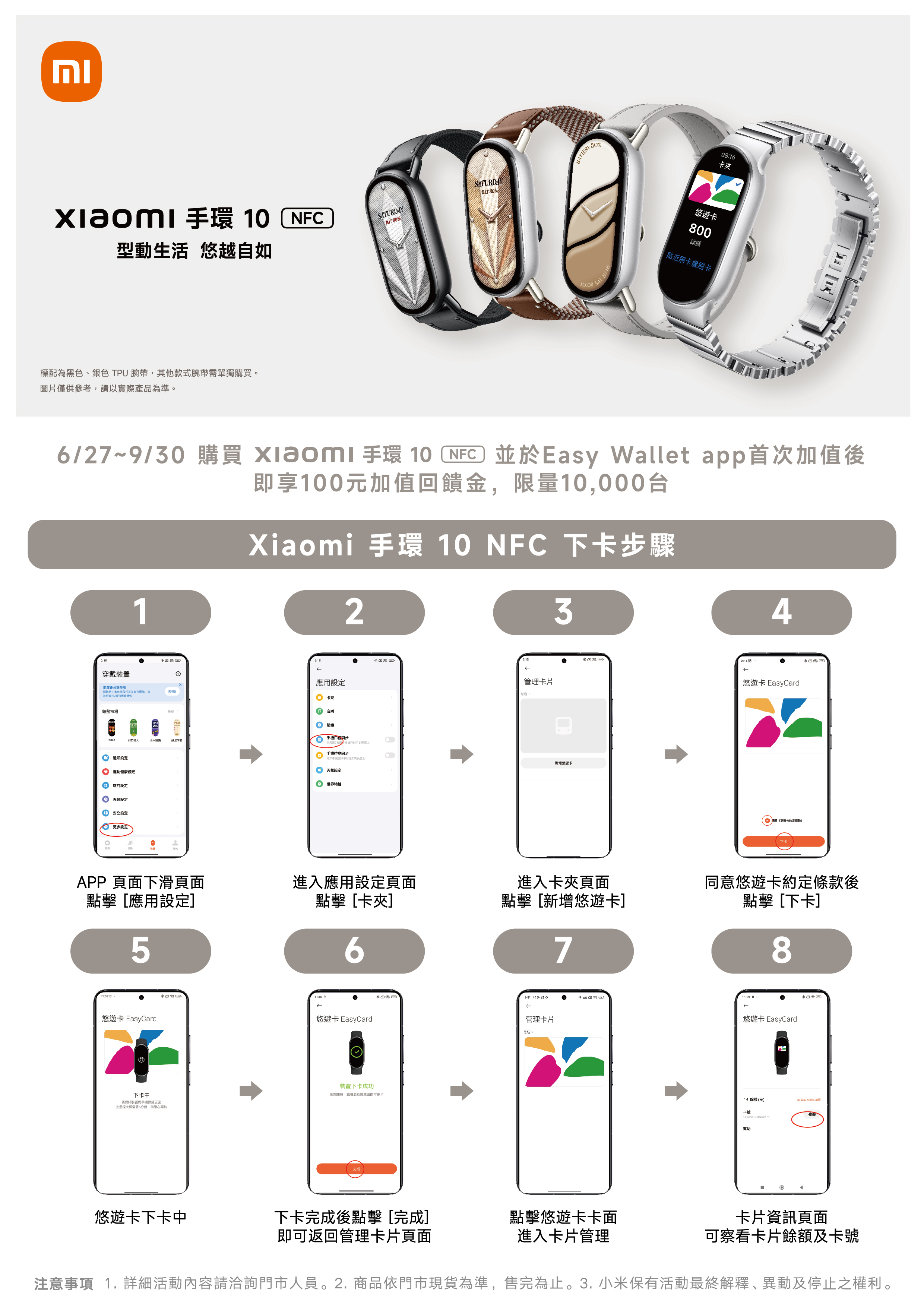 Xiaomi 手環 10 NFC「新增悠遊卡」步驟詳見連結: