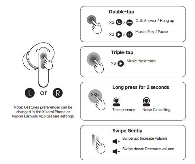 1. Please choose ear tips that match your ear canal size to reduce sound leakage when using the REDMI Buds 8 Pro.