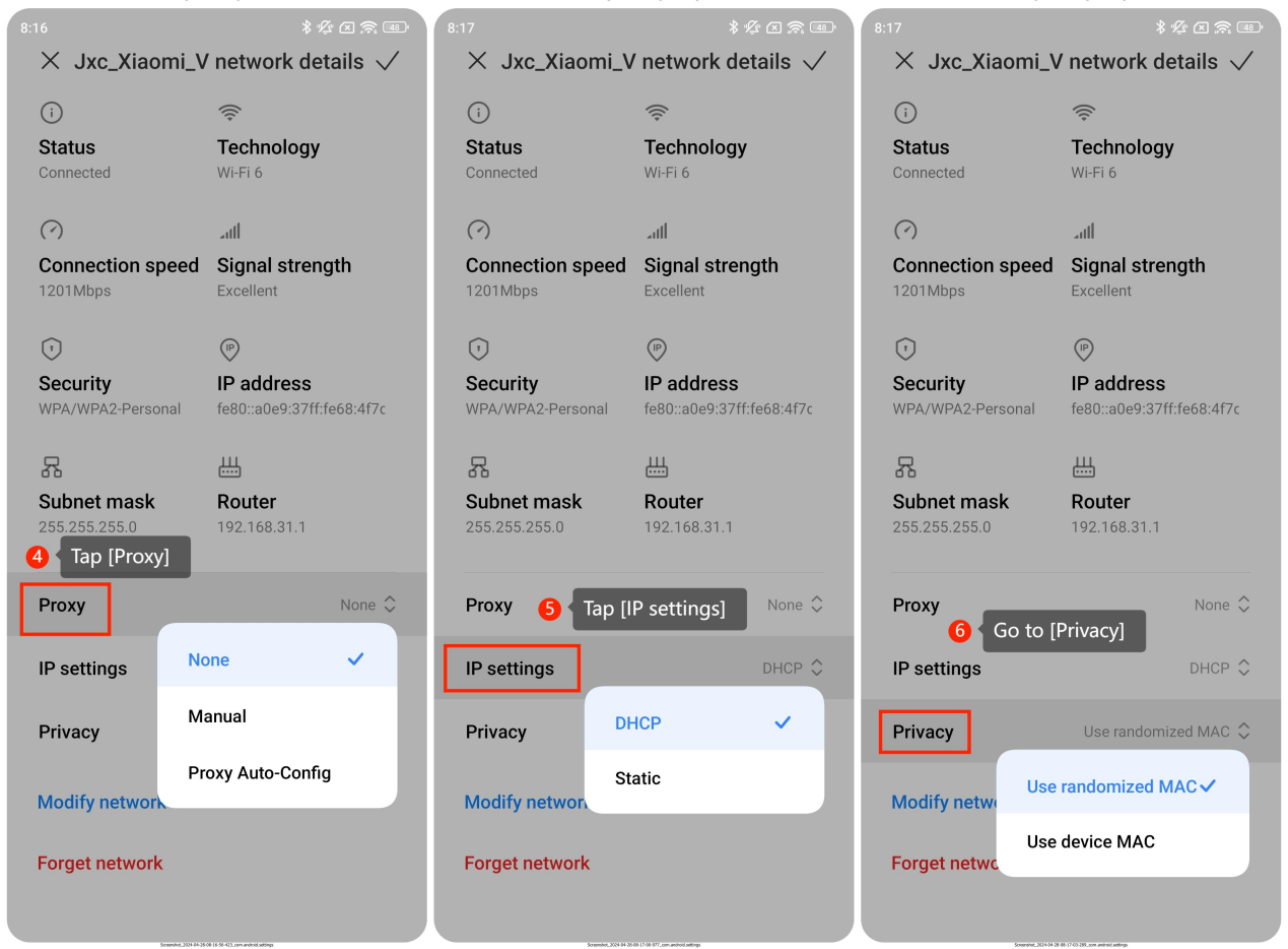 6. Đi tới [Quyền riêng tư]. Bạn có thể thay đổi chế độ MAC trong giao diện này;
