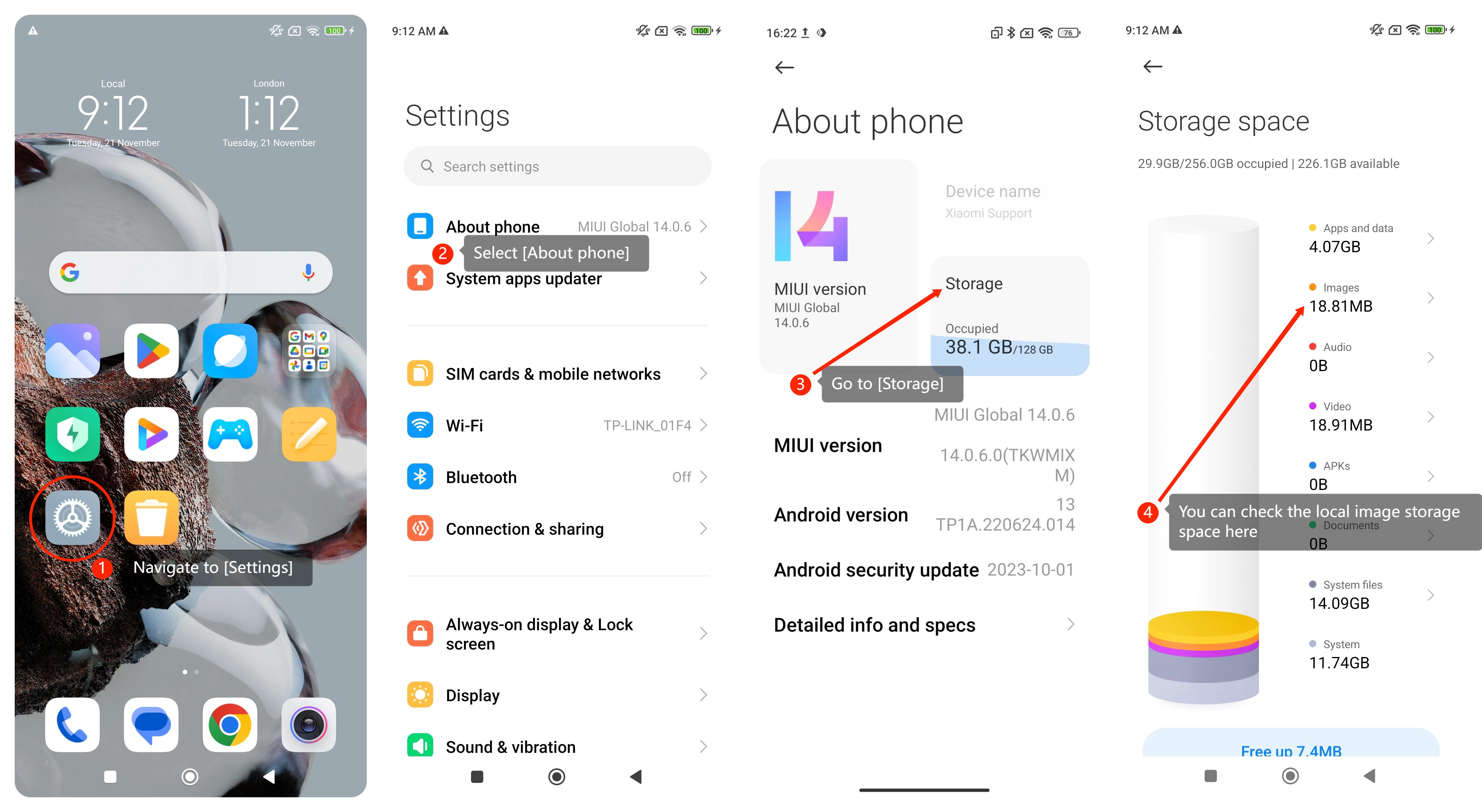 Để kiểm tra dung lượng lưu trữ hình ảnh cục bộ trên điện thoại thông minh, vui lòng tham khảo các bước sau: