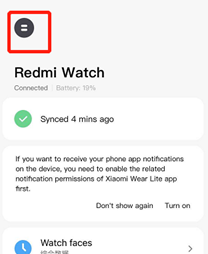 1. Vui lòng mở Ứng dụng Xiaomi Wear và kiểm tra xem kết nối Bluetooth có bị ngắt giữa đồng hồ và điện thoại di động trên trang chủ hay không;