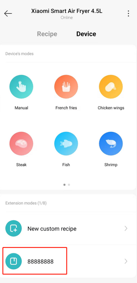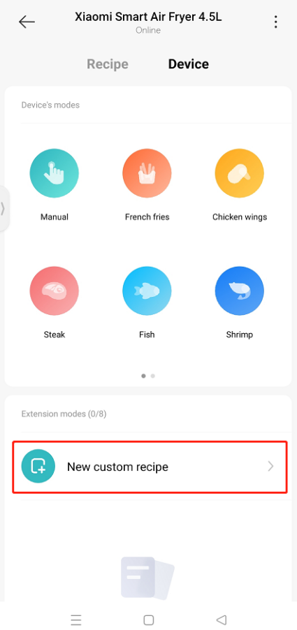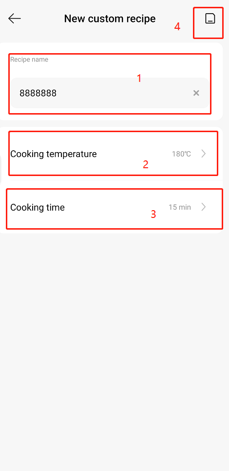 Công thức nấu ăn tùy chỉnh có thể được đặt trong APP, bạn có thể thêm chức năng công thức nấu ăn đám mây chính thức được cung cấp trên APP vào thiết bị này hoặc tùy chỉnh chức năng công thức trên APP và thêm nó vào thiết bị này.