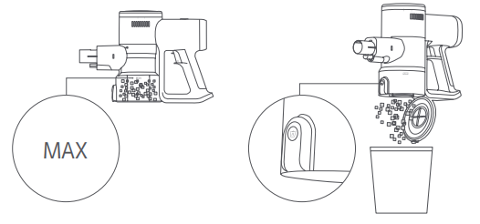 Q8: Ý nghĩa của nhãn 'MAX' trên ngăn chứa bụi trong suốt của Máy hút bụi Xiaomi G20 Lite là gì?