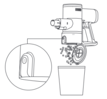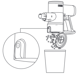 Ghi: Căn chỉnh nắp ngăn chứa bụi với thùng rác, nhấn nút xả bụi và bạn có thể vứt rác.