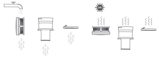 3. Rửa sạch bộ lọc, bộ lọc trước và bộ lọc sau dưới vòi nước chảy cho đến khi sạch. Sau khi rửa sạch, lau khô trong không khí đến 24 giờ cho đến khi khô hoàn toàn.