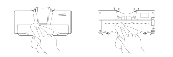 2. Sử dụng khăn hoặc khăn giấy khô để lau sạch bụi bám vào cổng hút và nắp trong suốt;