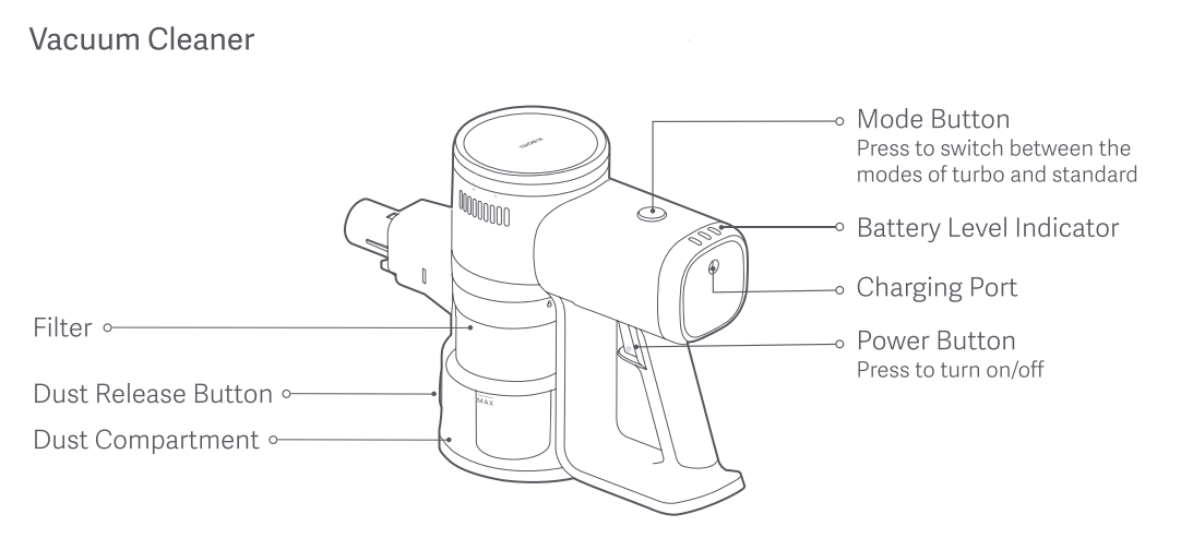 Q4: Chức năng của các nút trên Xiaomi Vacuum Cleaner G20 Lite là gì?