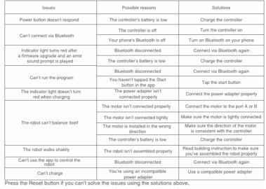 A: Làm theo hướng dẫn trong phiên bản thủ công hoặc điện tử trong Ứng dụng để lắp ráp robot. Kiểm tra robot của bạn cẩn thận trước khi bắt đầu: