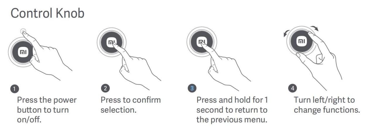 Sản phẩm này sử dụng kết hợp màn hình LCD và núm vặn. Các chức năng và chế độ khác nhau được truy cập thông qua các thao tác như xoay, nhấn, nhấn và giữ.