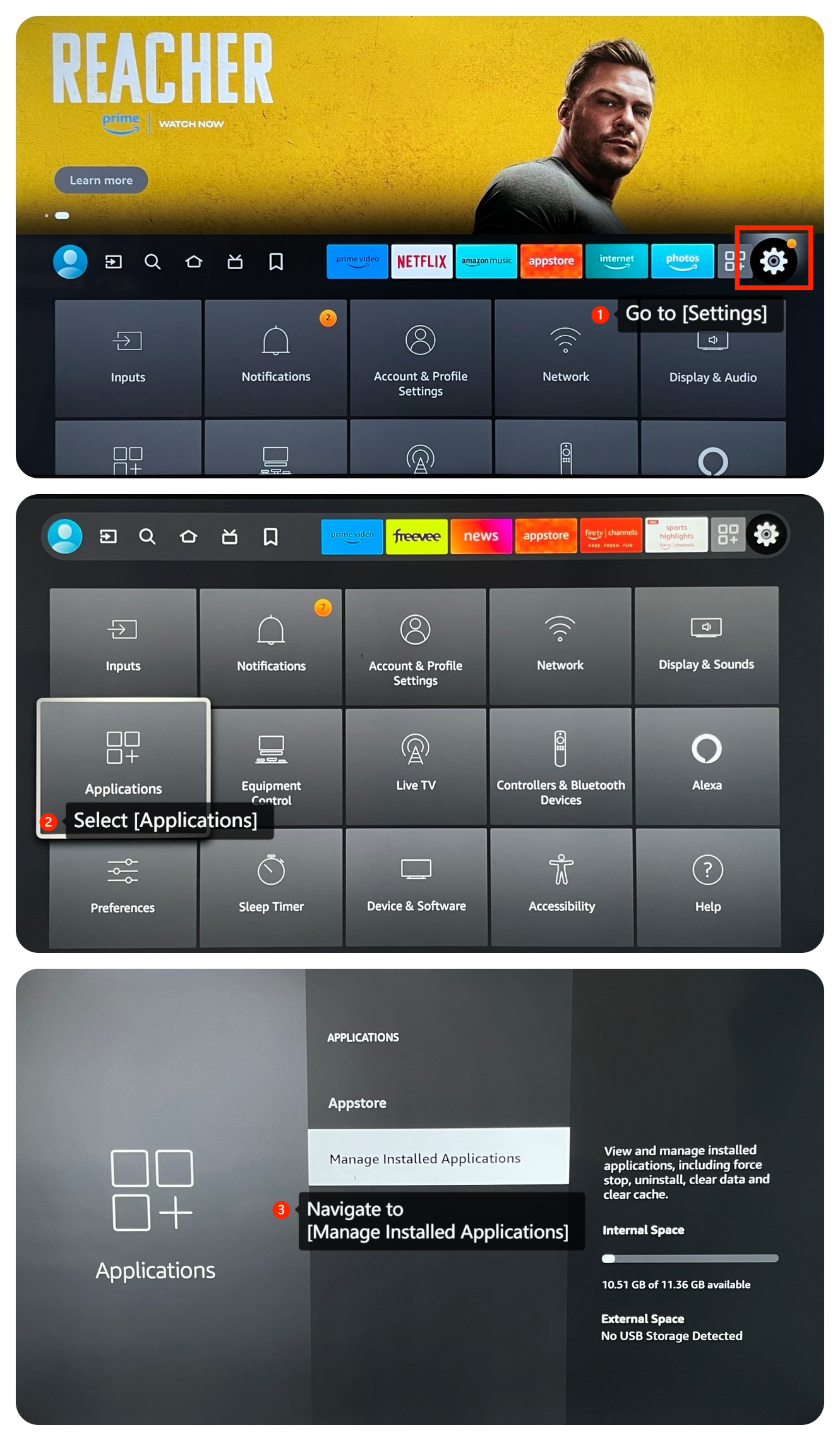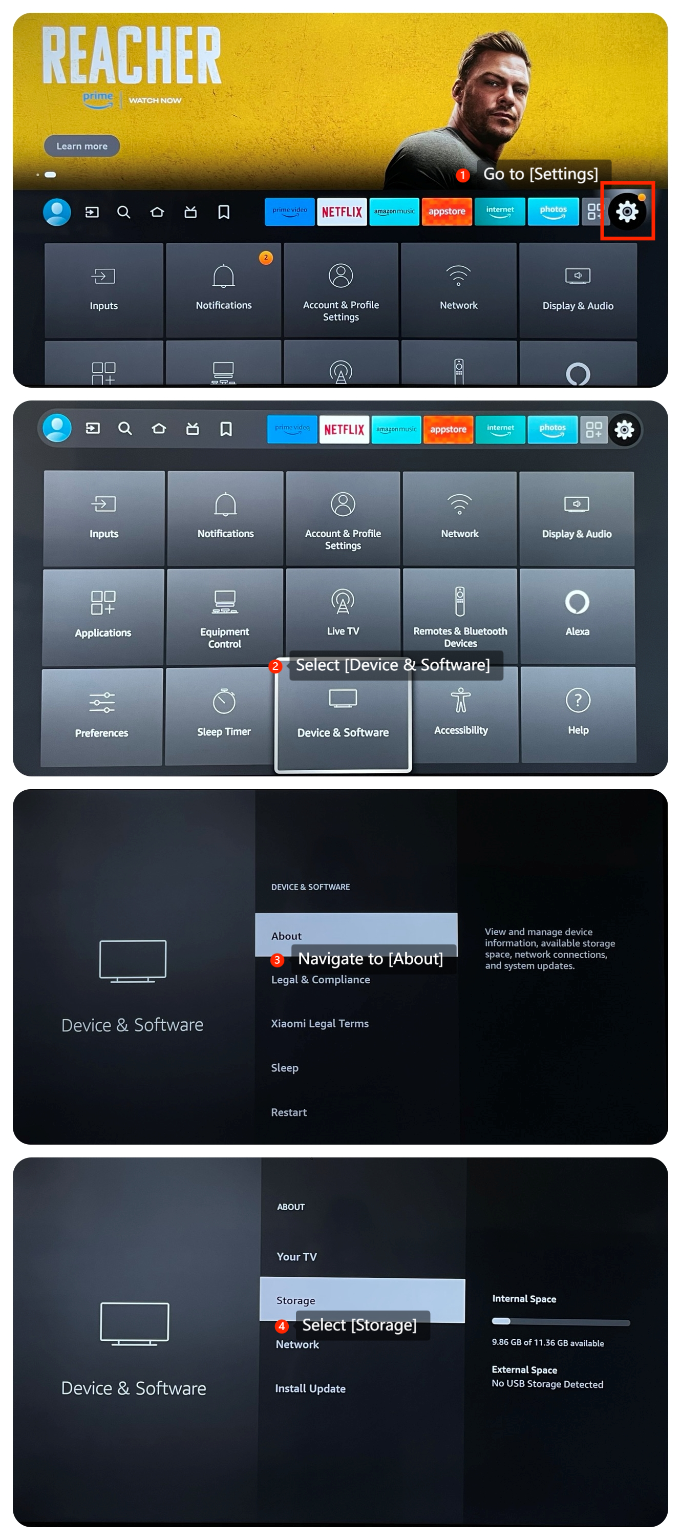 Nếu bạn không cài đặt ứng dụng trên Xiaomi TV F2 32 của mình, vui lòng tham khảo các bước sau: 1. Đảm bảo rằng TV của bạn đã cài đặt các bản cập nhật phần mềm mới nhất bằng cách đi tới [Cài đặt] >> [Thiết bị &; Phần mềm] >>[Giới thiệu] >> [Cài đặt bản cập nhật] và kiểm tra các bản cập nhật; 2. Đảm bảo rằng TV của bạn được kết nối đúng cách với mạng; 3. Đôi khi, khởi động lại đơn giản có thể giải quyết nhiều vấn đề. Rút phích cắm thiết bị Fire TV của bạn khỏi nguồn điện, đợi một phút và cắm lại; 4. Tôikhông đủ dung lượng lưu trữ có thể ngăn cài đặt ứng dụng. Bạn có thể đi tới [Cài đặt] >>[Thiết bị &; Phần mềm] >> [Giới thiệu] >> [Bộ nhớ] để kiểm tra dung lượng lưu trữ khả dụng. Xóa các ứng dụng hoặc tệp không cần thiết để giải phóng dung lượng;