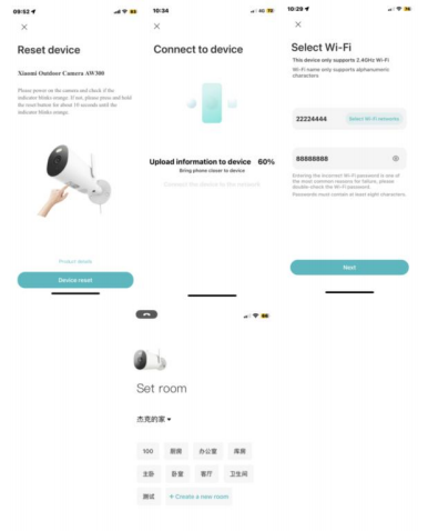 Như trong hình: trạng thái ngoại tuyến, giá trị tín hiệu xuất hiện màu đỏ "x" và tín hiệu kém sẽ khiến thiết bị ngoại tuyến hoặc máy ảnh không mở được.5. Sau khi đặt lại thiết bị, hãy sử dụng điểm phát sóng điện thoại di động để kết nối hoặc di chuyển máy ảnh đến lần thử trong nhà, vì camera ngoài trời thường được đặt ngoài trời, vì vậy nó được tách ra khỏi tường bộ định tuyến trong nhà và có thể có nhiễu khác, chẳng hạnnhư nỗ lực này Máy ảnh có thể được sử dụng bình thường, vui lòng cải thiện môi trường mạng ở nhà. Nếu không có cách nào ở trên có thể được sử dụng sau khi vận hành, vui lòng giải quyết nó sau khi bán.8. Q: Xiaomi Outdoor Camera AW300 Ánh sáng xanhnhấp nháy không thể được sử dụng bình thường, phải làm gì?Đáp:1. Nếu đèn xanh nhấp nháy khi kết nối với APP, điều đó có nghĩa là máy ảnh không thể kết nối với mạng hoặc không thể liên kết với tài khoản, vui lòng kiểm tra xem mật khẩu tài khoản wifi có chính xác không và mạng có đáp ứng các yêu cầu của máy ảnh hay không;2. Nếu bạn đã kết nối thành công với APP và đột nhiên đèn xanh nhấp nháy và không thể sử dụng được, vui lòng kiểm tra xem mạng có bình thường không. Thử kết nối lại;9. Hỏi: Xiaomi Outdoor Camera AW300 Quên mật khẩu trong cài đặt bảo mật máy ảnh, phải làm gì?A: Xóa thiết bị trong APP Mi Home, sau đó nhấn và giữ nút Đặt lại của máy ảnh (nút đặt lại nằm trong nắp bảo vệ ở dưới cùng của thiết bị, bạn cần tháo nắpbảo vệ bằng tuốc nơ vít), giữ thiết bị trong hơn 10 giây và thêm lại máy ảnh vào APP Mi Home. 10.Q: Camera ngoài trời Xiaomi AW300 sẽ gặp phải tiếng hú trong khi gọi thoại?A: Khi gọi, vui lòng cố gắng không đặt điện thoại di động và thiết bị trong cùng một không gian, và cách thiết bị hơn 10 mét, tiếng vang huýt sáo do các cuộc gọi gần là bình thường. - Q:Xiaomi Outdoor Camera AW300 Làm thế nào để đối phó với màn hình chụp mờ và không có khung hình?