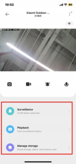 3. Q: Xiaomi Outdoor Camera AW300 Làm thế nào để xem các cài đặt có liên quan?A: Vào camera ngoài trời Xiaomi AW300, nhấp vào "Quản gia" bên dưới để vào, bạn có thể xem"thay đổi màn hình" màn hình chụp củamáy ảnh từng cái một;Nhấp vào "Lookback" để xem màn hình chụp liên tục suốt cả ngày; Nhấp vào Quản lý bộ nhớ để xem các bức ảnh được phân đoạn cả ngày hoặc xóa video khỏi thẻ nhớ.