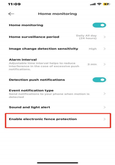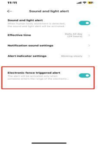 Sau khi mở, khi ai đó vào phạm vi hàng rào điện tử (màn hình camera cần được hiển thị theo chiều ngang), báo động sẽ được phát ra; Điều kiện kích hoạt có thể được chọn tùy chỉnh.
