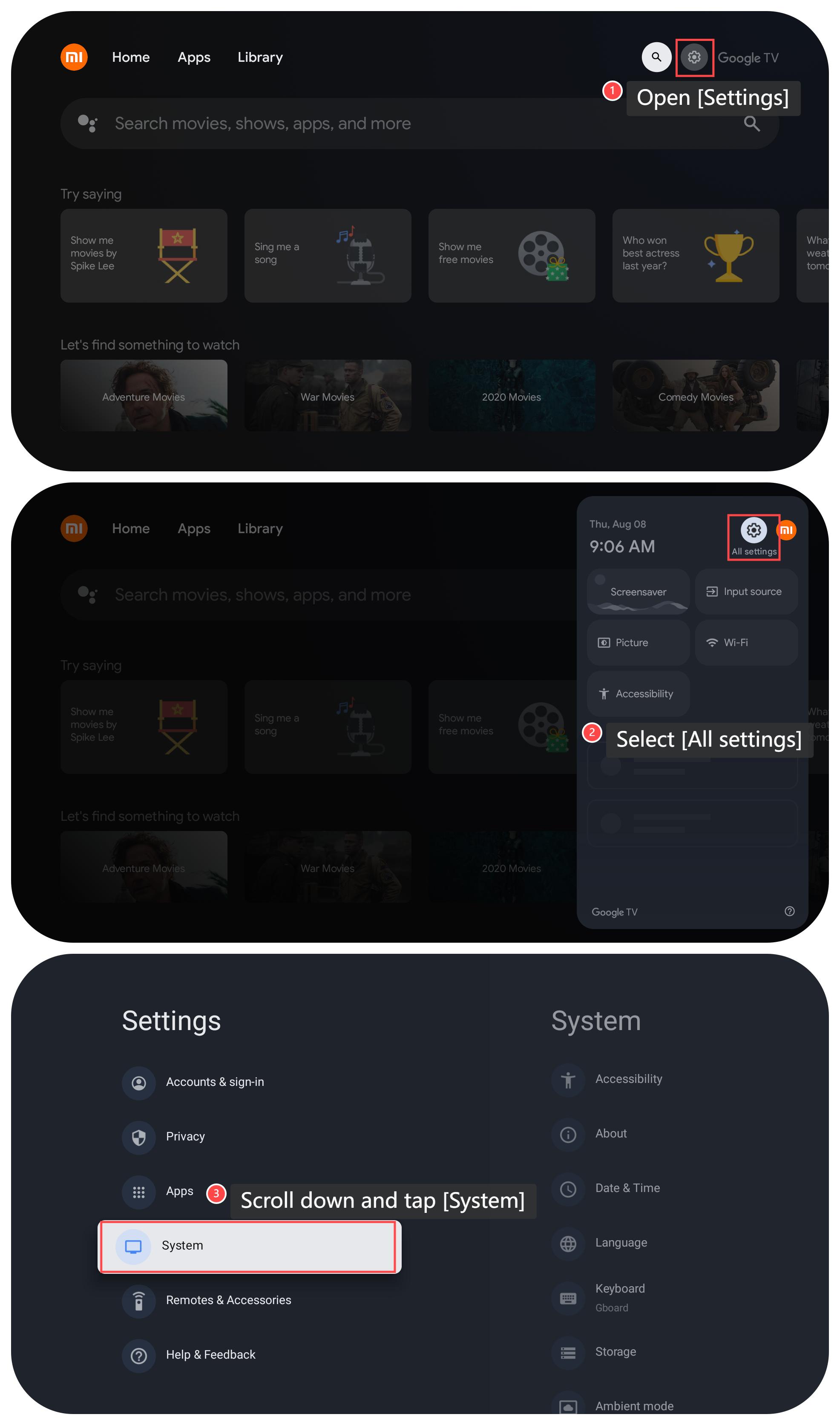 3. Cuộn xuống và nhấn vào [Hệ thống];