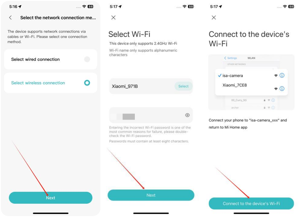 A: 1. Nếu đèn báo nhấp nháy màu vàng khi kết nối với APP Mi Home / Xiaomi Home , điều đó cho biết rằng máy ảnh không thể kết nối với mạng. Kiểm tra xem mật khẩu Wi-Fi có chính xác không và mạng có đáp ứng các yêu cầu của máy ảnh không;