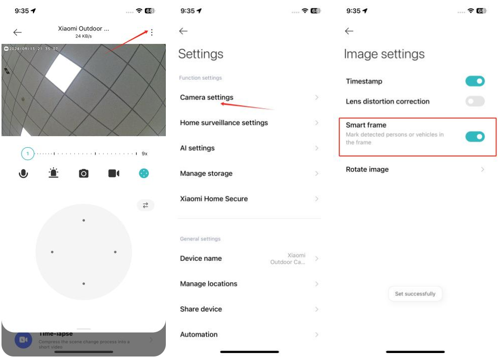 A: 1. Mở Mi Home / Xiaomi Home APP > > chọn > máy ảnh> [Máy ảnh settings] > > [Tự động phát hiện];