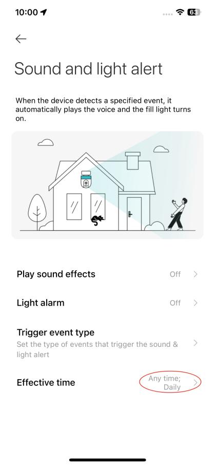 3. Ngoài ra, bạn có thể bật [Someone enters the fenced area] và [Someone leaves the fenced area] trong [Cài đặt] >> [Máy ảnh settings] >> [Âm thanh và light alert] >> [Trigger event type]. Thiết bị sẽ phát lời nhắc bằng giọng nói và bật đèn bổ sung khi phát hiện những sự kiện này.