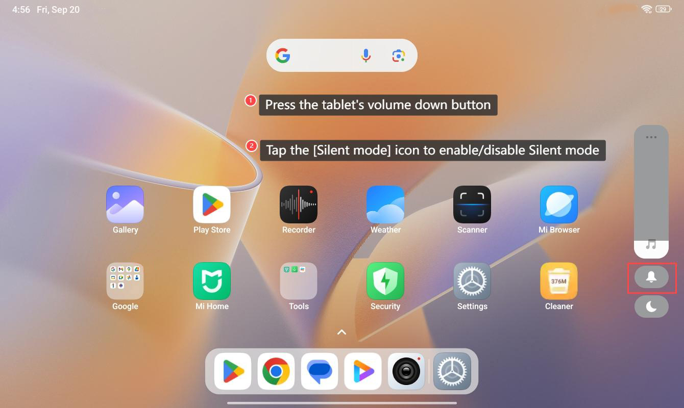 1. Nhấn nút giảm âm lượng của máy tính bảng;