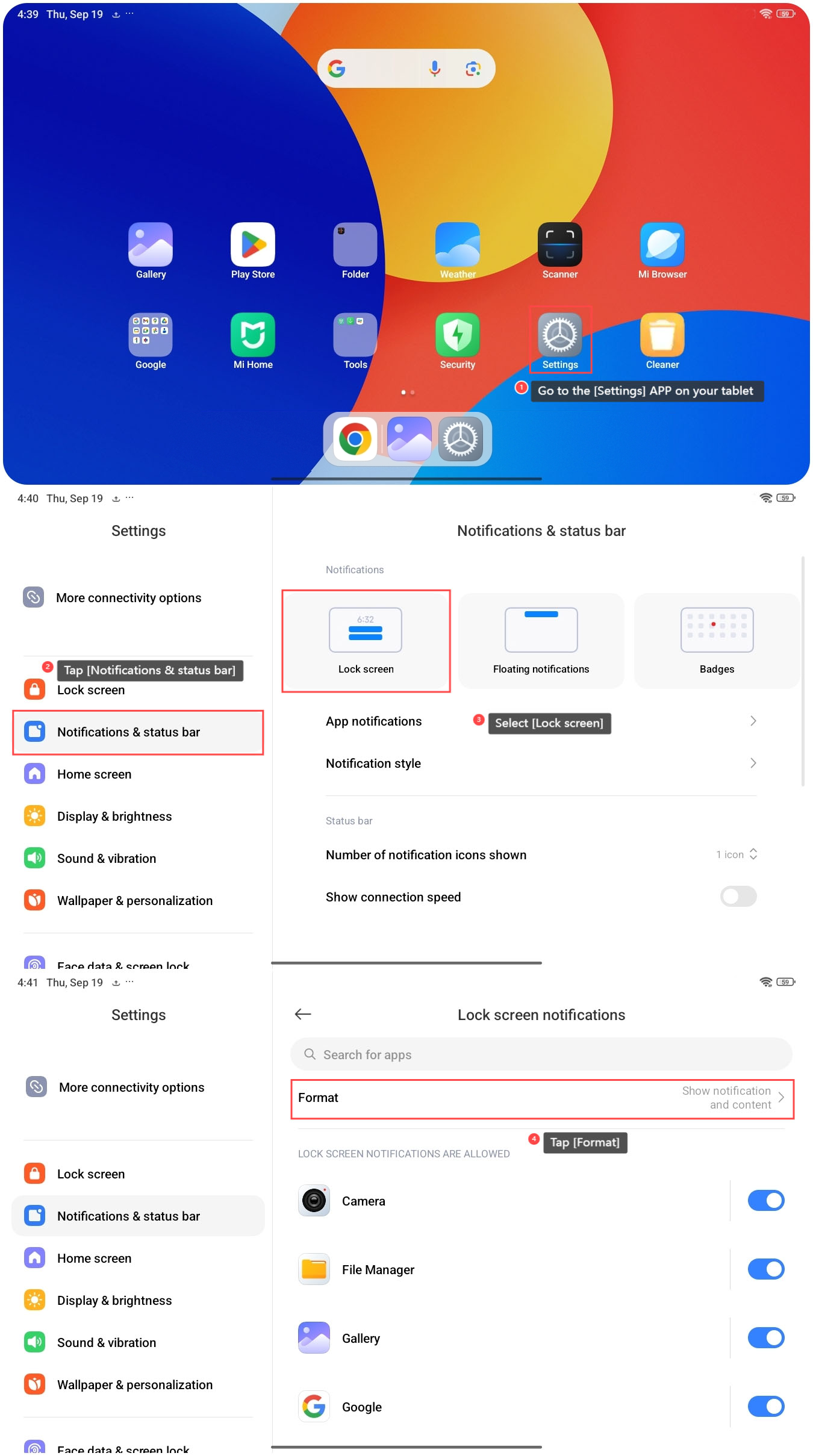 Để quản lý thông báo trên màn hình khóa của máy tính bảng, vui lòng tham khảo các bước sau: